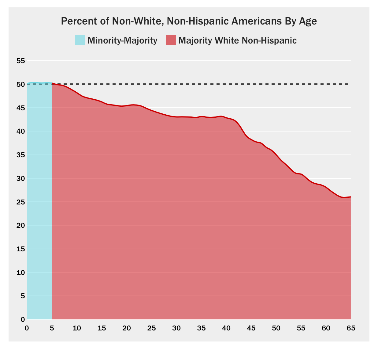 The nation as a whole is not expected to reach this distinction until 2044. But we can see the future by looking at the youngest Americans, who are naturally ahead of the curve.