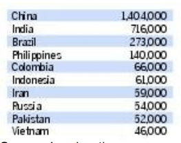 Countries in which Canada’s 10-year visas have proved most popular