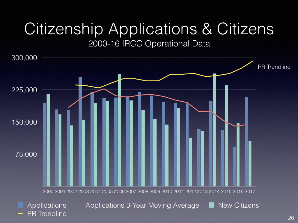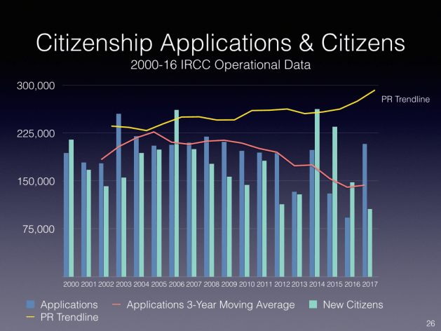 The above chart includes full 2017 citizenship IRCC operational data (preliminary).