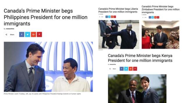 Canada’s Prime Minister begs Nigeria President for one million immigrants,” reads the headline on an article published in April on the website CBTV.