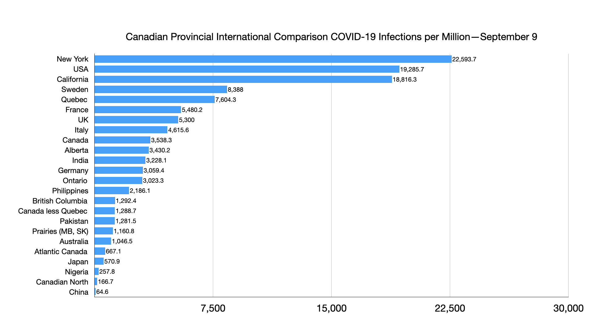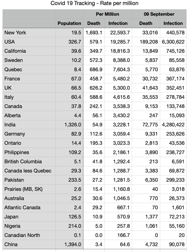 #COVID-19: Comparing provinces with other countries 9 September Update