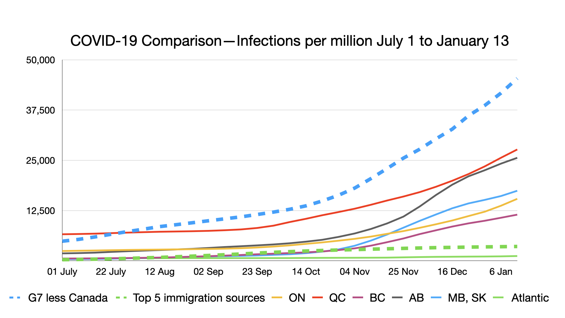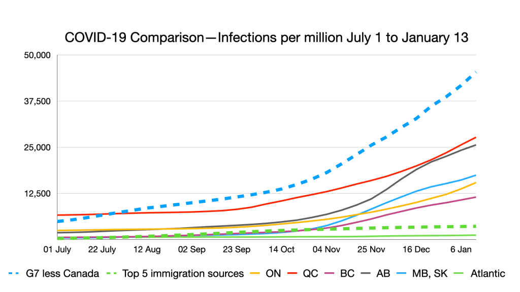 #COVID-19: Comparing provinces with other countries 13 January Update, including vaccinations