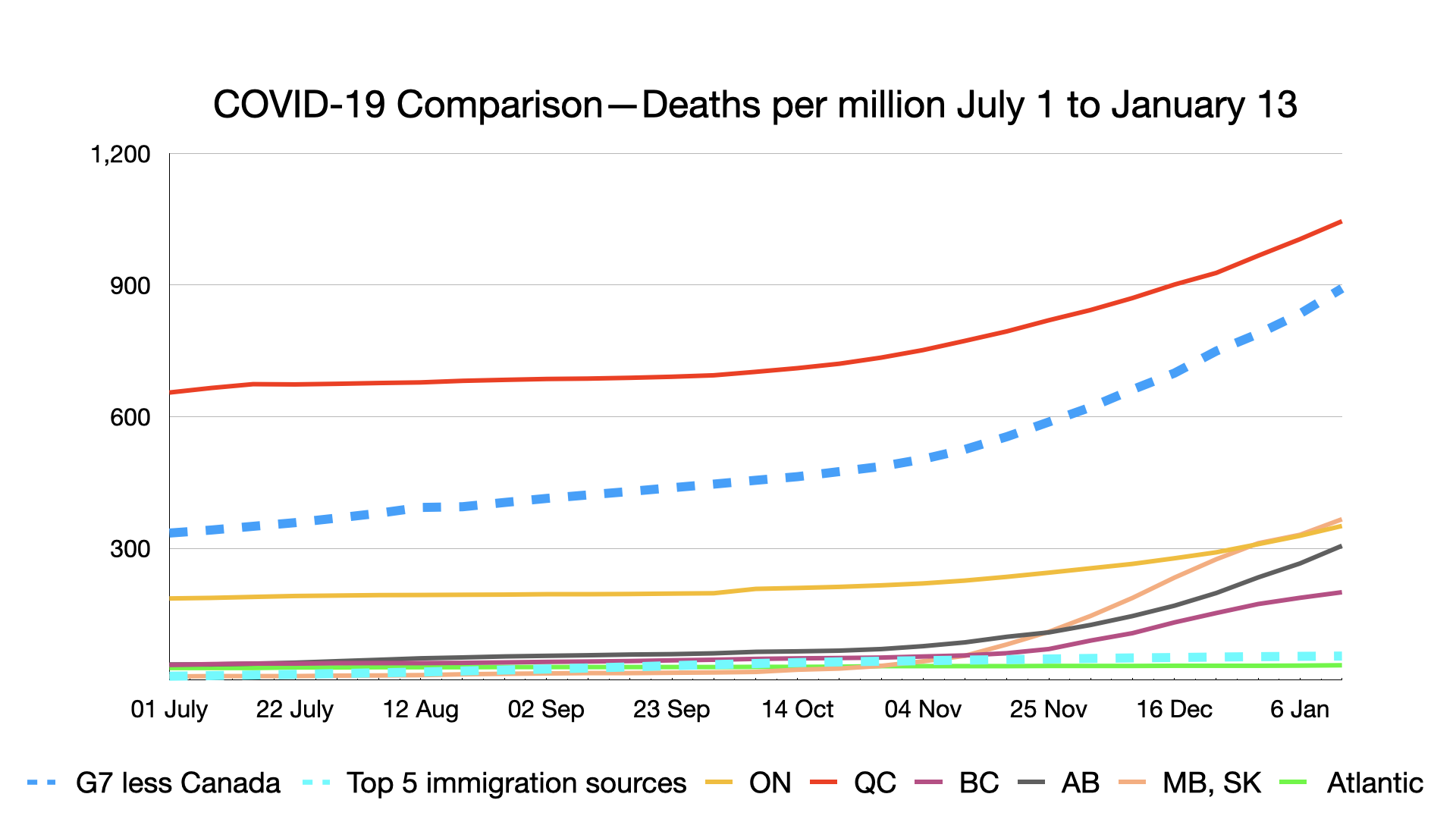 Deaths per million: Alberta moved ahead of Canada less Quebec