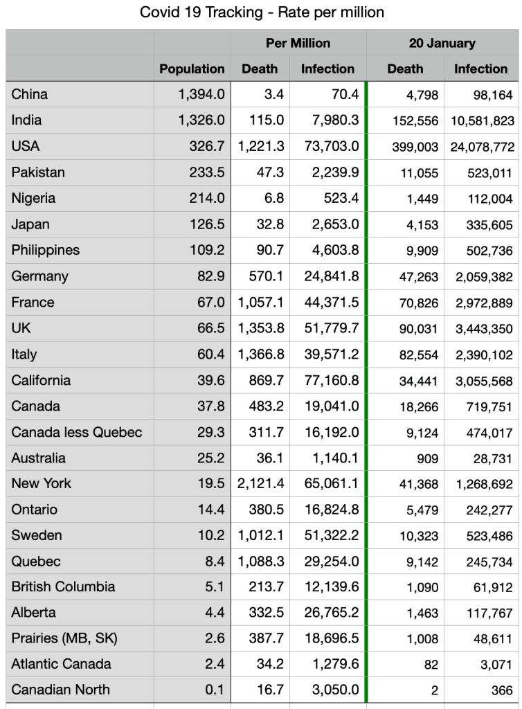 #COVID-19: Comparing provinces with other countries 20 January Update, including vaccinations