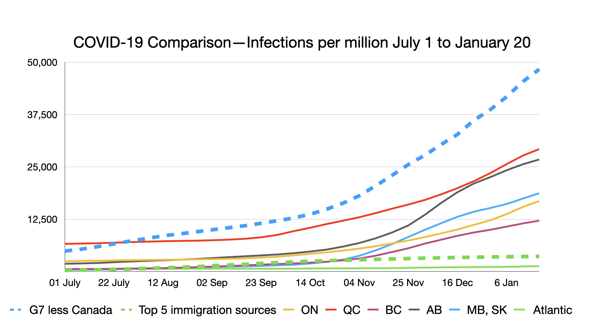 #COVID-19: Comparing provinces with other countries 20 January Update, including vaccinations