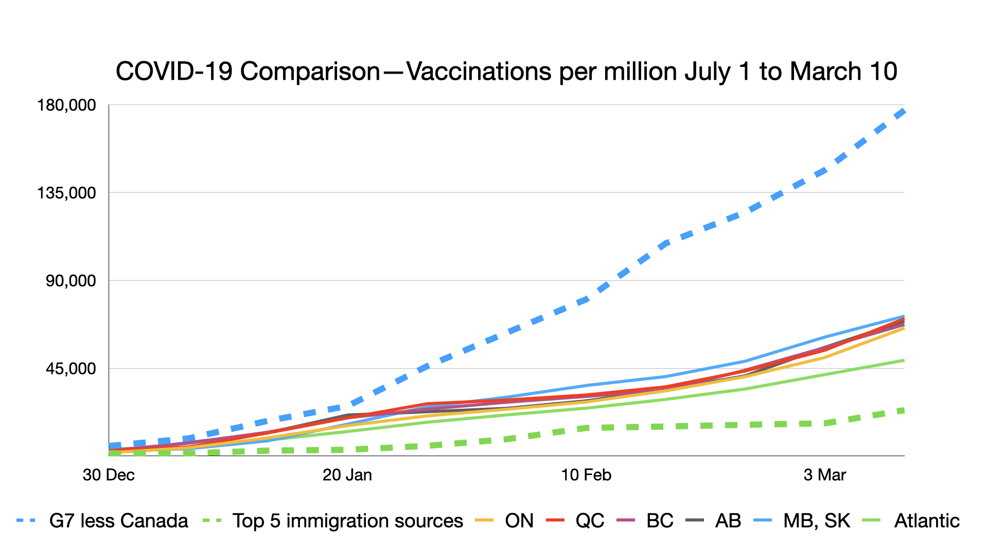 Vaccinations per million: Gap between G7 and Canada continues to grow despite the arrival of more vaccines.