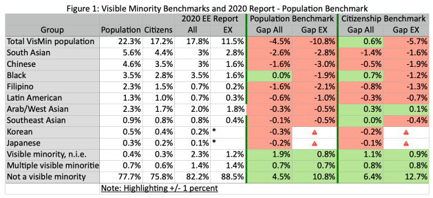 Unfortunately, the employment equity data for the public service does not indicate that Black public servants representation are disproportionately under-represented at the EX and other levels compared to other visible minorities for the most part.