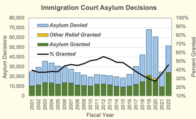 TRAC found that when asylum cases were completed within three to 18 months, only 31% of cases were granted asylum.