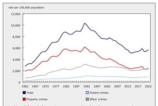 This screenshot taken July 9, 2024 shows a Statistics Canada graph depicting police-reported crime between 1962 and 2022
