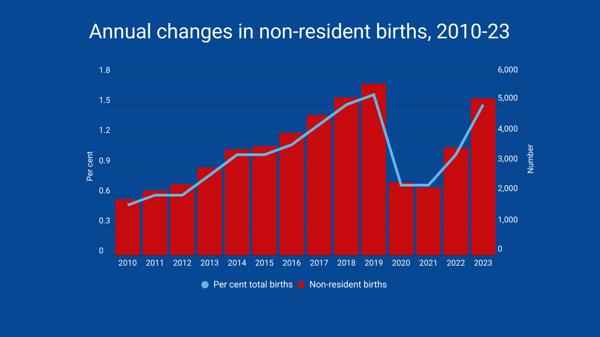 But he said births to non-residents are now back near pre-pandemic levels, jumping last year by 46 per cent to an estimated 5,219.