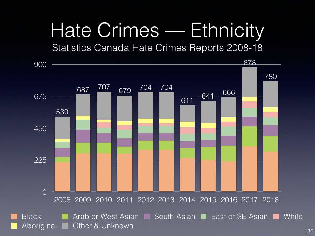 Police data published by Statistics Canada showed a 151-per-cent increase in hate crimes targeting Muslims across Canada from 2016 to 2017 – the largest increase across any group.