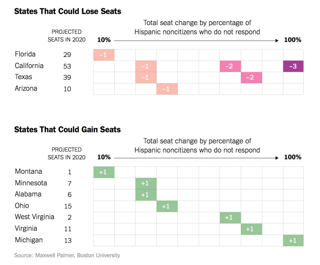 According to Maxwell Palmer, an assistant professor of political science at Boston University, if 10 percent of Hispanic noncitizens opted out, Florida could lose one congressional seat, and Montana could gain one. In an extreme case, in which 100 percent of Hispanic noncitizens did not participate, a total of seven congressional seats could be reshuffled, with three lost by California and two by Texas, Dr. Palmer said.