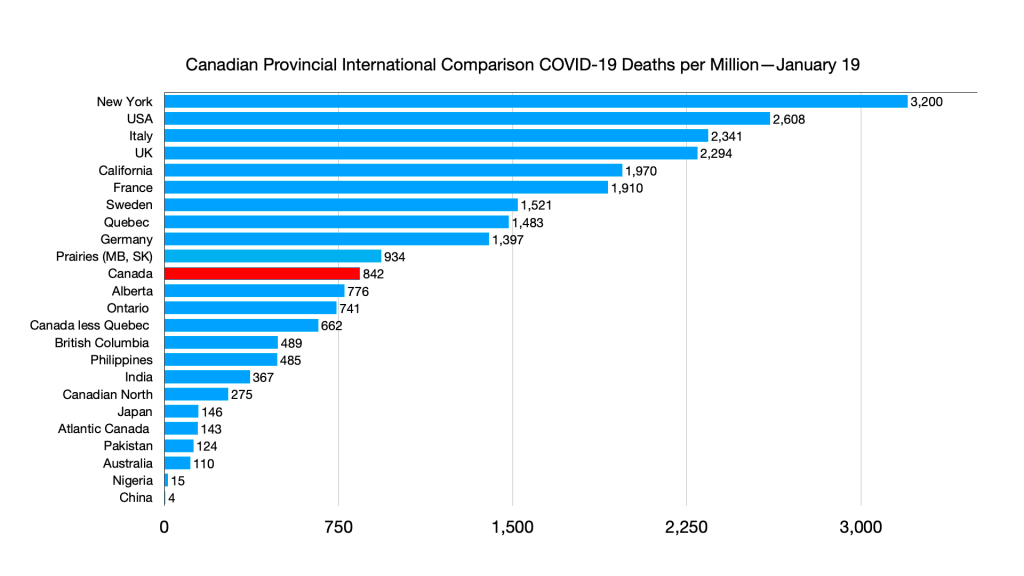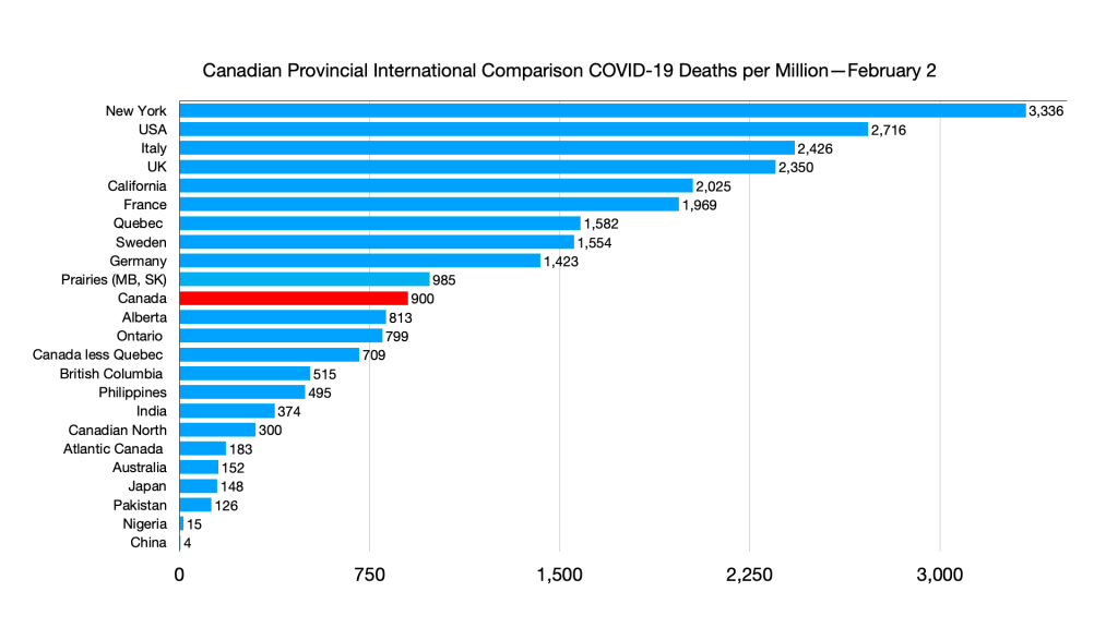 Deaths: Quebec ahead of Sweden, Atlantic Canada ahead of Japan, Australia ahead of Pakistan.