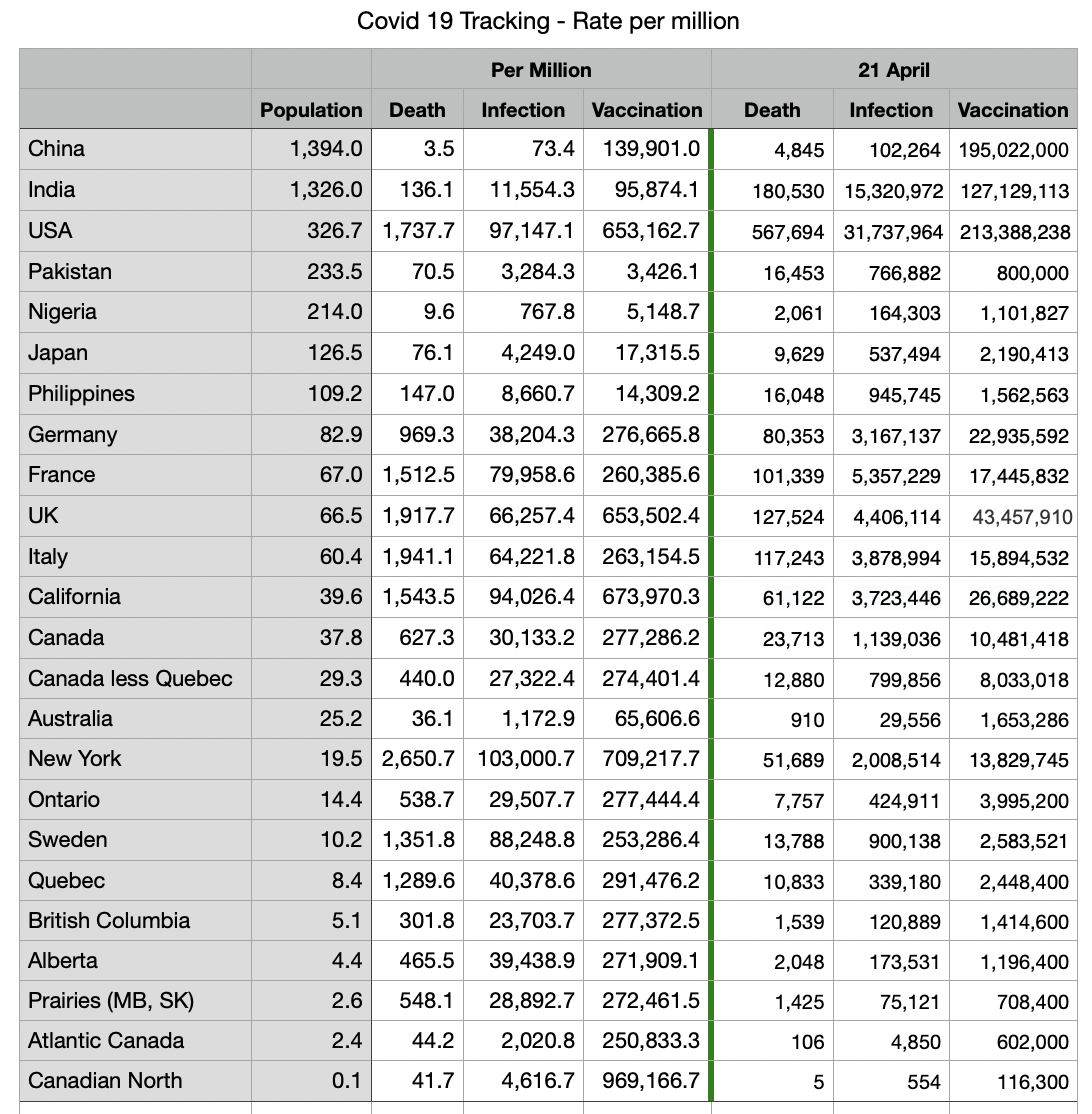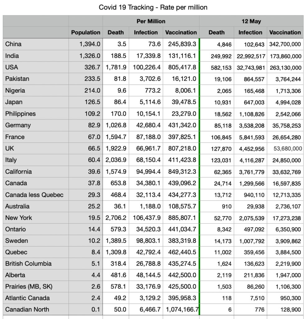 India is grappling with rapid increase in cases which will likely show-up in their relative ranking over the next few weeks: