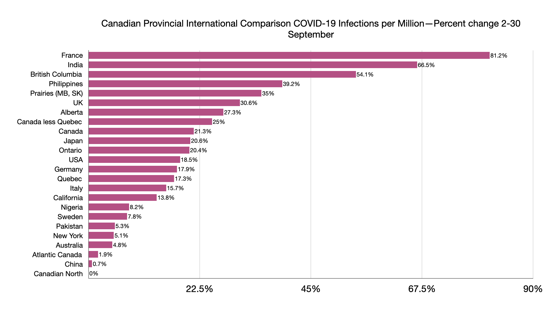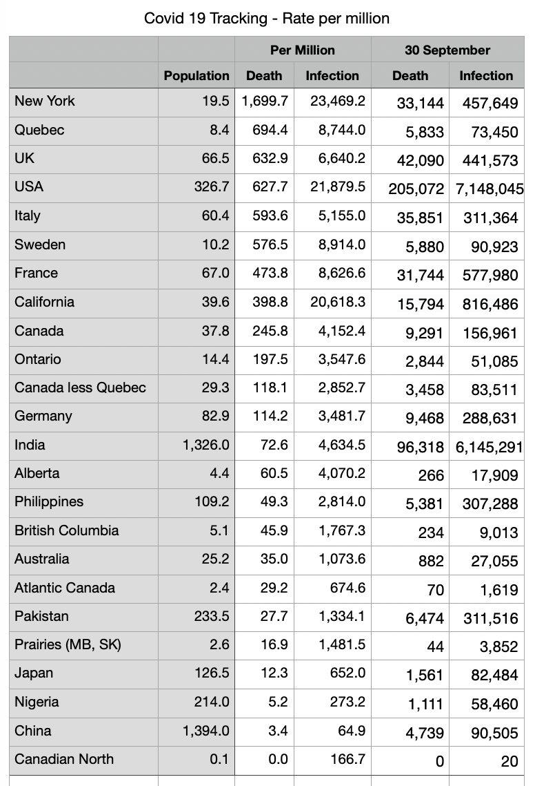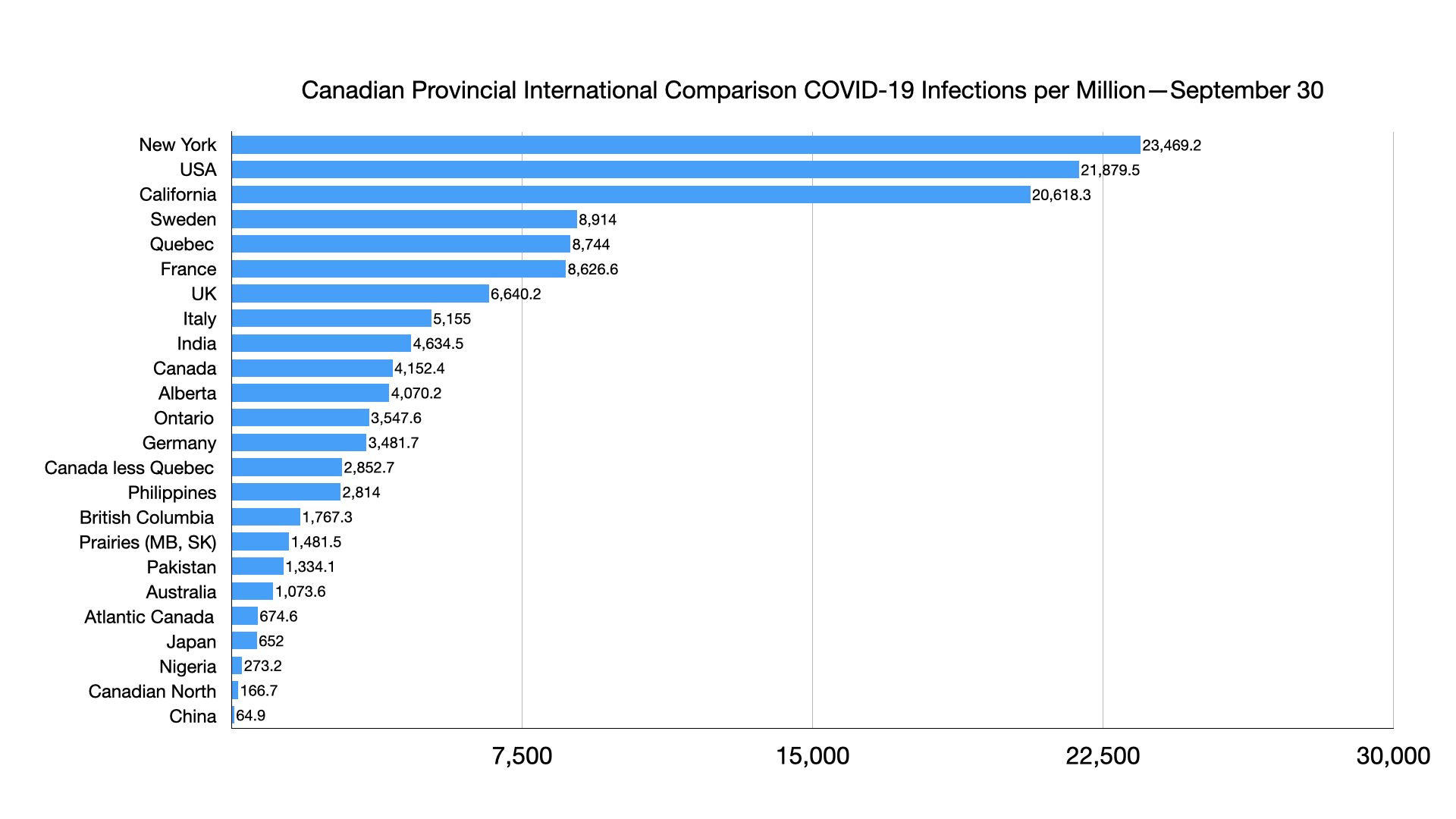 Infections per million: Ontario now ahead of Germany, Canada less Quebec ahead of Philippines