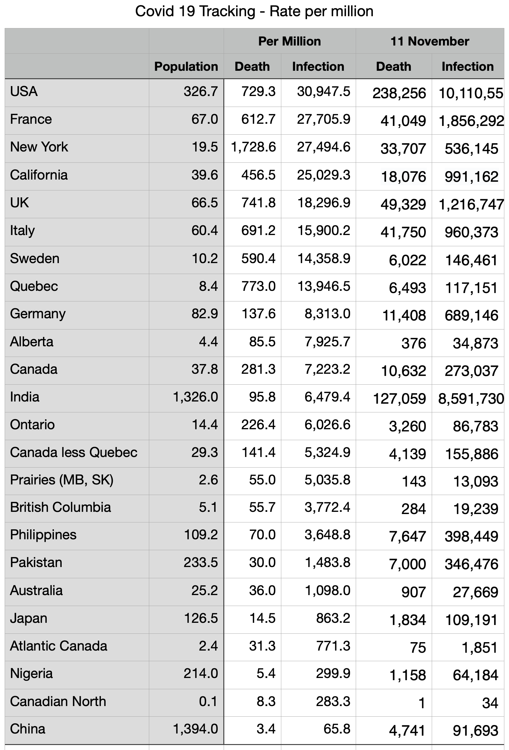 #COVID-19: Comparing provinces with other countries 11 November Update