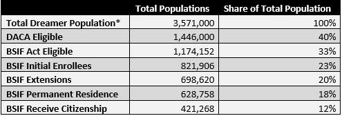 Table 1: Dreamer Populations and Eligibility Under Border Security and Immigration Reform Act