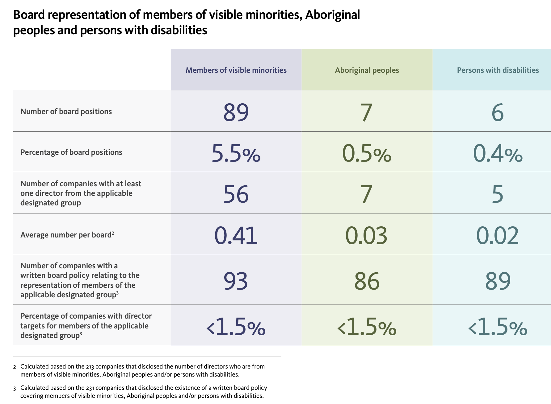 Over all, about one in 10 women executives identified as a visible minority. The most common groups represented were South Asian and Chinese, with fewer executives being Black and Filipino.