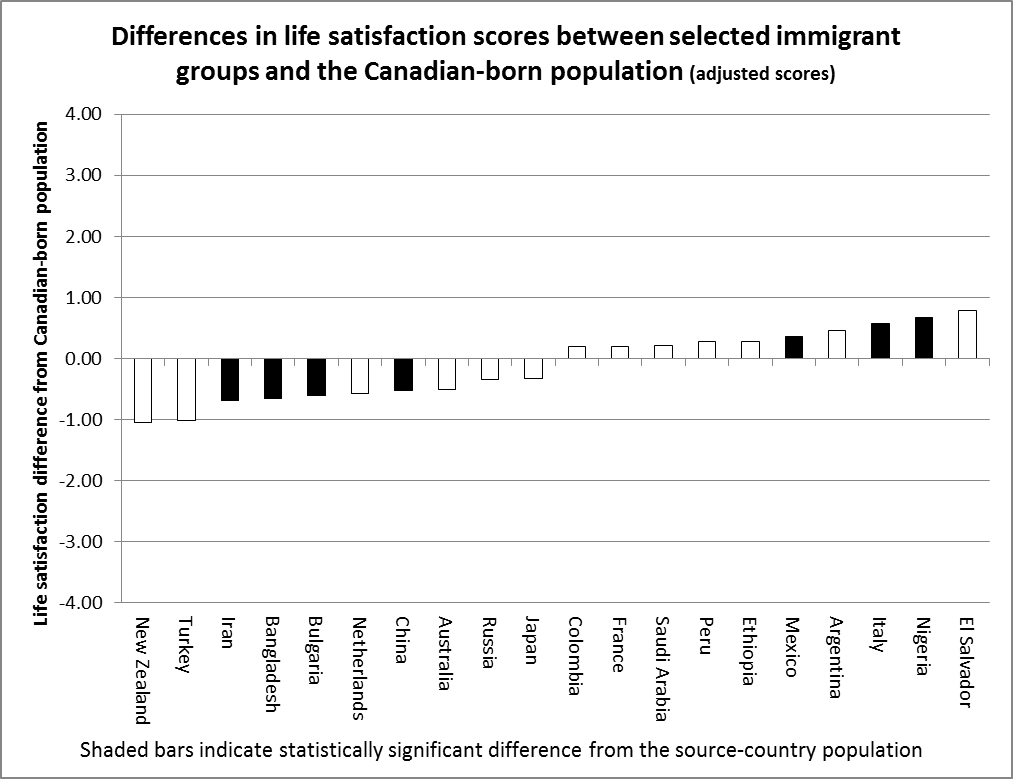 Recent immigrants are less likely to report having satisfaction with their amount of free time