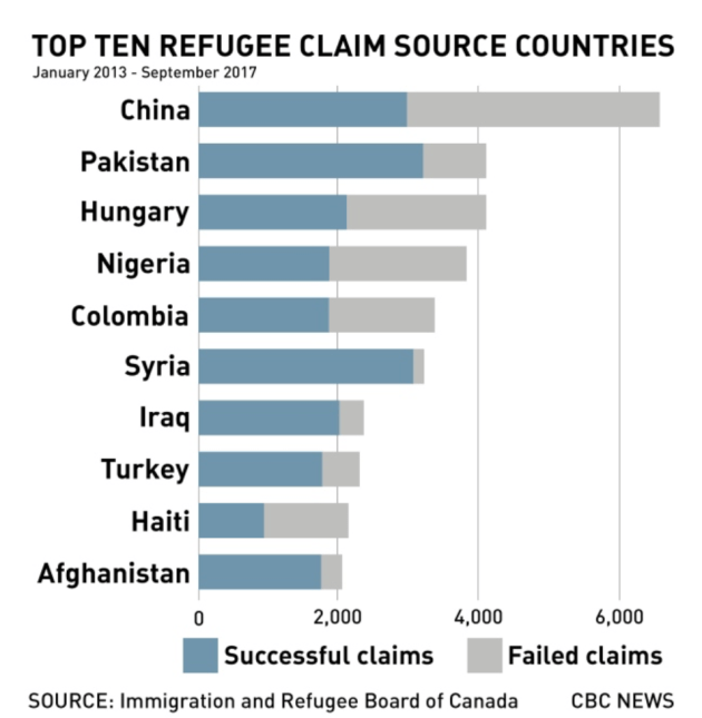 Canada was the ninth-largest recipient of refugee and asylum claimants in 2017, with some 50,400 claims filed, a number that jumped to 55,000 in 2018.