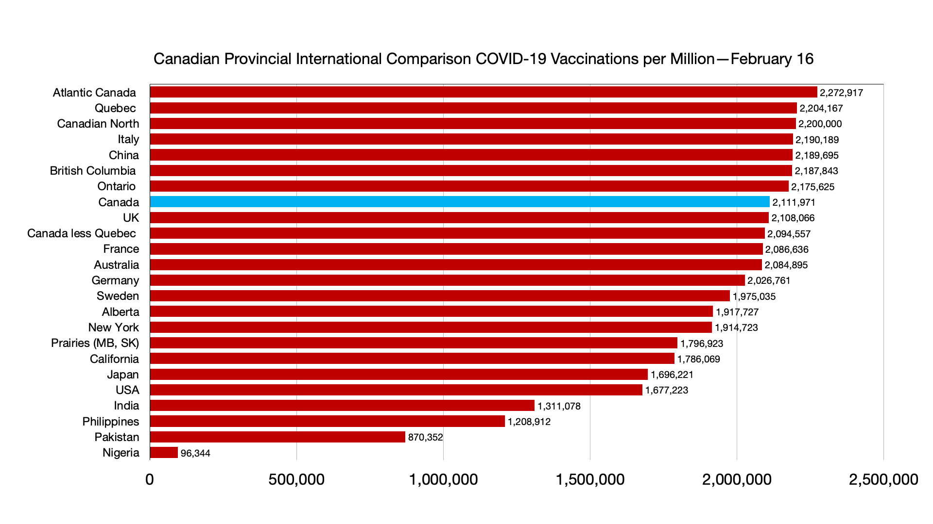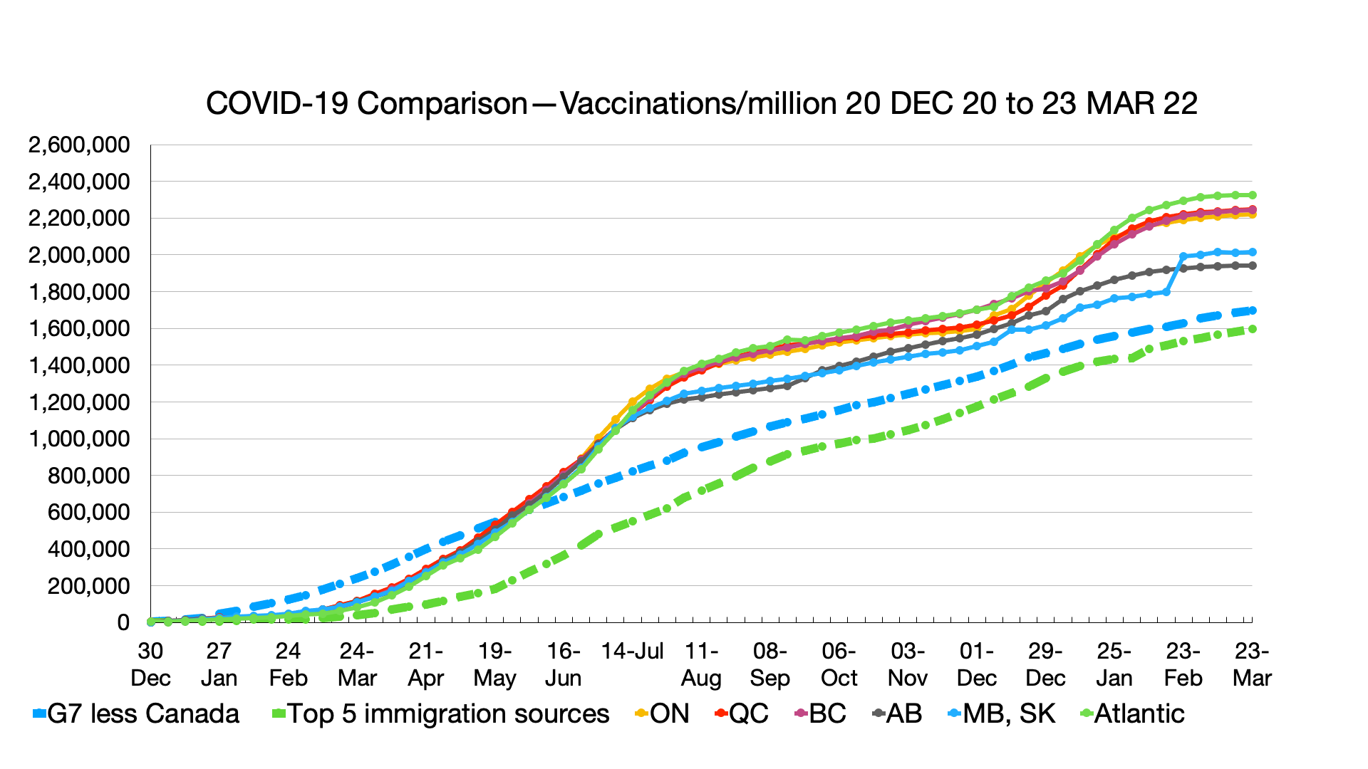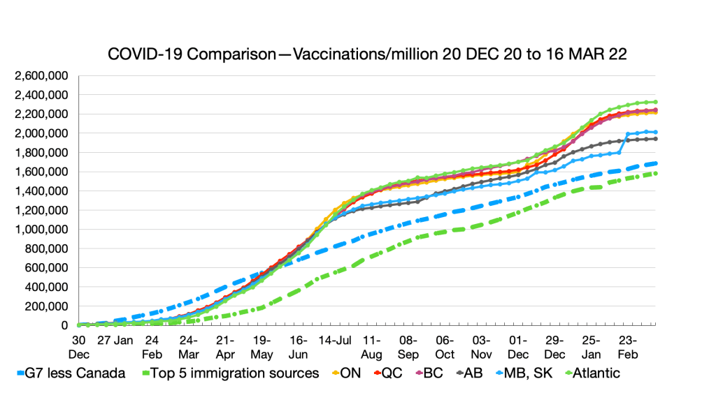 Vaccinations: No major change but Alberta and Prairies continue to be laggards compared to other provinces. Ironic given they are among the first to relax and end restrictions.