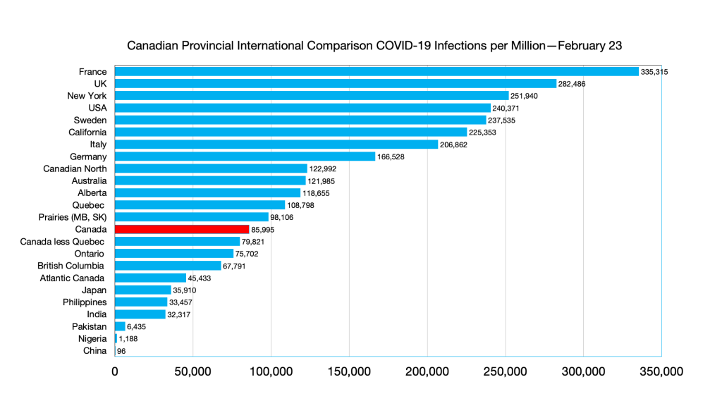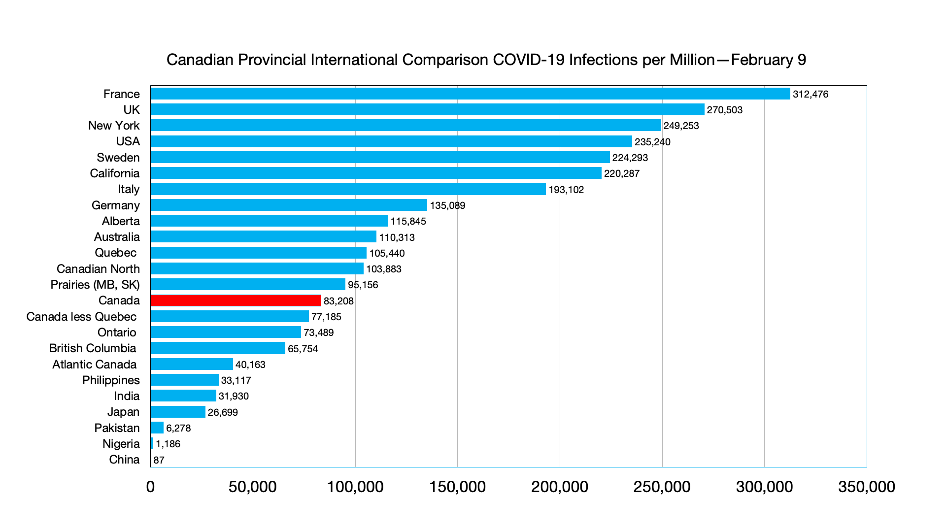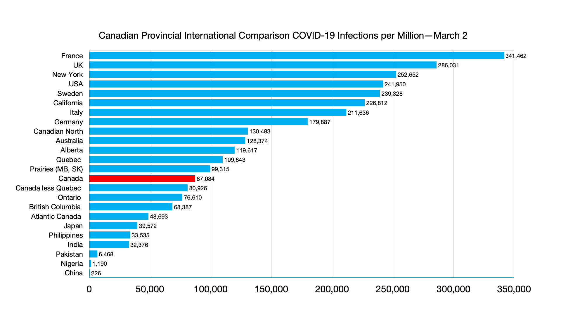 Infections: Sweden ahead of California, Australia ahead of Quebec, Canadian North ahead of Prairies.
