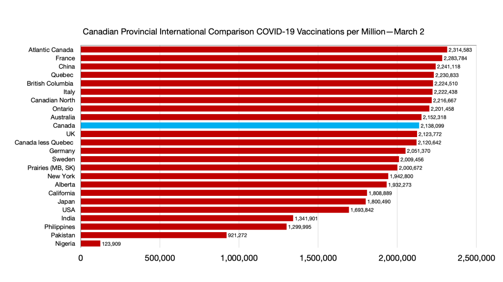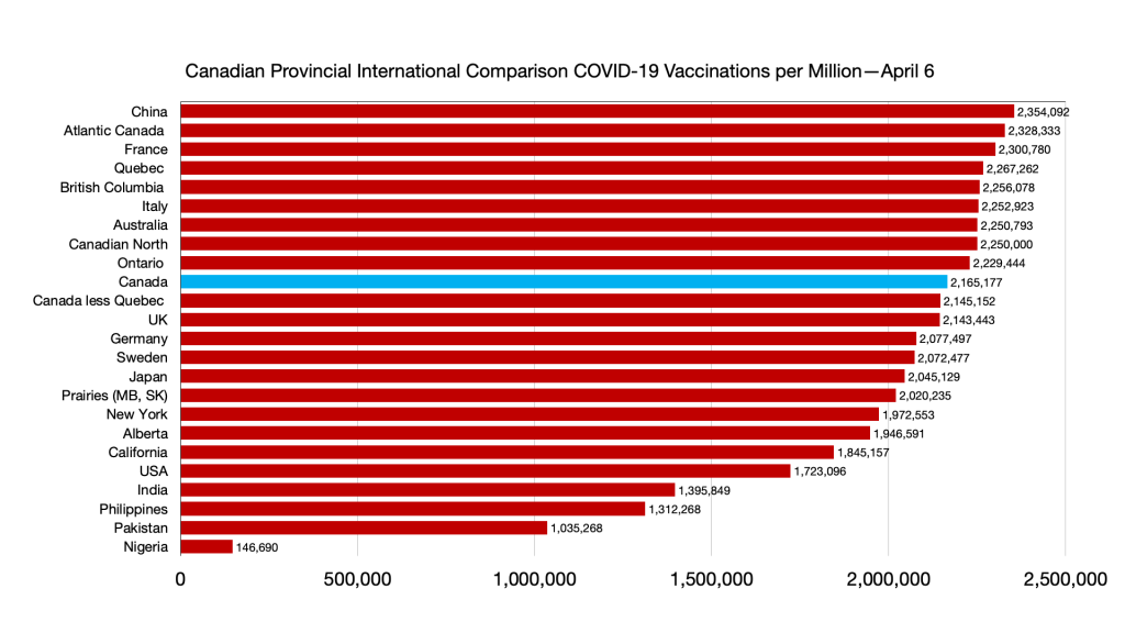 Vaccinations: China ahead (again) of Atlantic Canada, Japan ahead of Prairies.