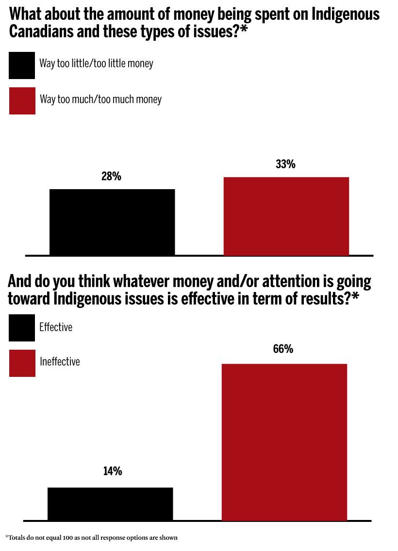 If there’s one thing respondents to the Angus Reid Institute survey agreed on, it’s that tax dollars meant to help First Nations people are generally failing to do so. Two out of three said government funds going toward Indigenous issues are generally ineffective—and a new report from the auditor general’s office will hardly quell that pessimism. Among other things, it found that data on high school graduation rates on reserves left out students who dropped out prior to Grade 12, meaning the department overstated the graduation rate by 22 percentage points.