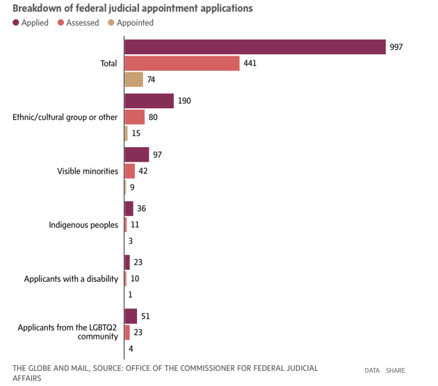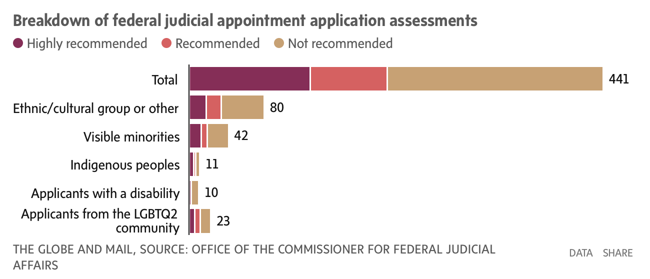 On Friday, for the first time in Canadian history, the judicial affairs commissioner published data on the diversity of candidates and appointments.