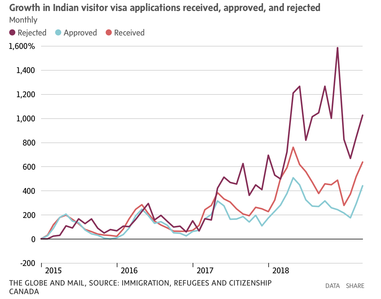 While officials recognize some future students may want to stay and gain work experience in Canada after graduation, the predominant use of lack of travel history as a refusal ground, said the ApplyBoard study, “suggests that many applicants are perceived as having permanent residency as their primary purpose, instead of study.”