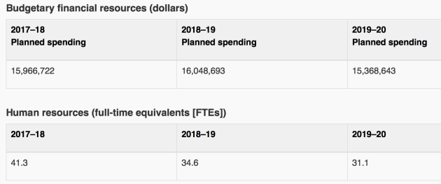 Planned spending is $62 million, projected to remain flat for the next three years (three percent of departmental spending).