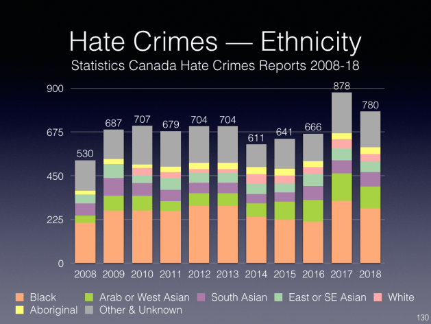 Police data published by Statistics Canada showed a 151-per-cent increase in hate crimes targeting Muslims across Canada from 2016 to 2017 – the largest increase across any group.
