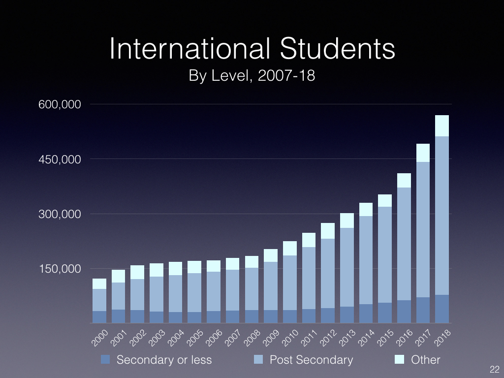 More pressures from within Quebec regarding more immigration, this time on the part of students and the relatively low number studying in Quebec: