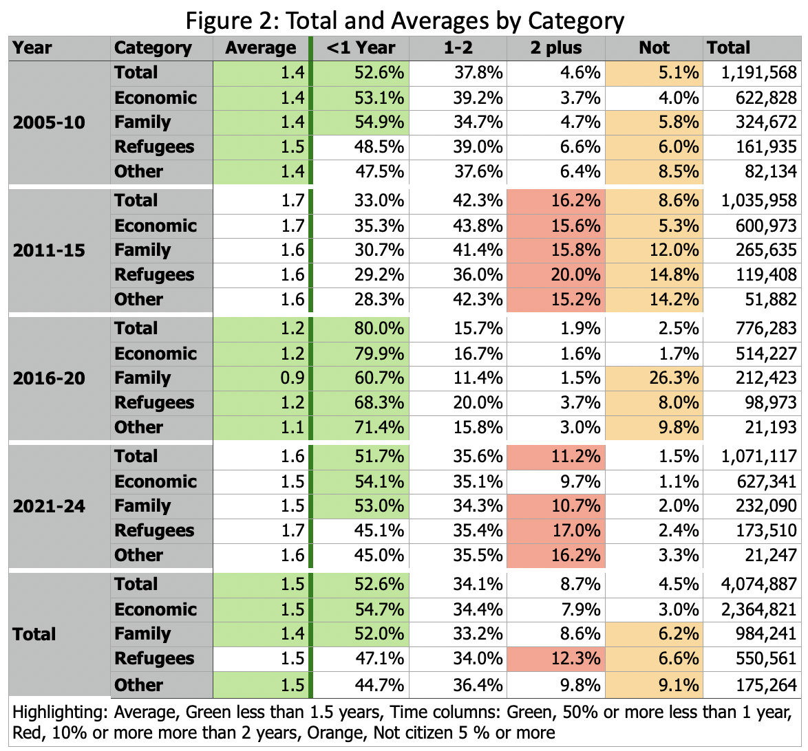 Analysis of citizenship applications between 2005 and 2023 reveals how the previous Conservative government’s pledge to make citizenship “harder to get and easier to lose” resulted in significant delays and reduced approval rates before political realities resulted in mitigating those impacts. The Liberal government reversion to previous residency and other requirements cemented a return to historic approval rates and processing times.