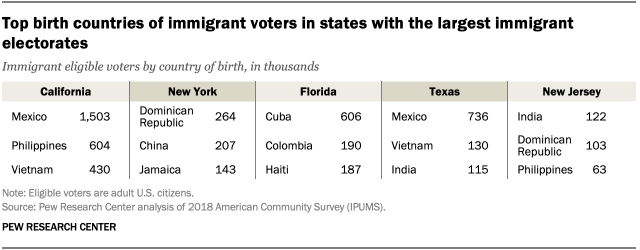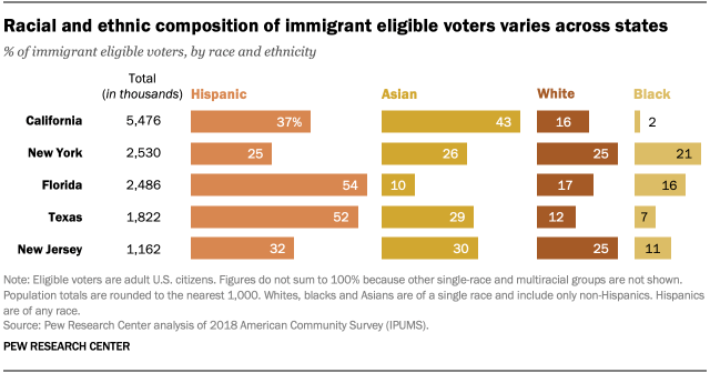 Source: Most of the 23 million immigrants eligible to vote in 2020 election live in just five states